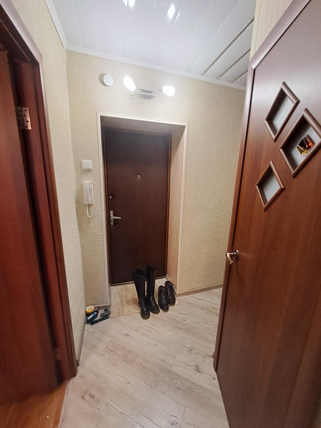 В квартире проведет отличный евроремонт, вставлены пластиковые окна, ванна и санузел раздельные, в панели, покрытие пола комната, кухня – линолеум, коридор – ламинат, ванна, санузел – плитка, установлена входная металлическая дверь. Не угловая.