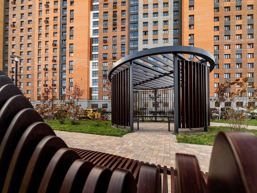 Внутреннее пространство комплекса- настоящий центр жизни. Безбарьерная средаСкейтпаркВоркаут-площадка с биомеханическими тренажерамиКонтейнеры Еcobin для мусора, в том числе для сбора пластикаЗоны с бесплатным Wi-FiОтдельная площадка для выгула собак.