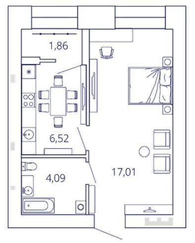 Квартира общей площадью 29 кв. м, в которой все продумано для комфортного проживания. просторная комната 17 кв м.просторный санузел 4 кв. м.кухня с учетом лоджии 8,5 кв. м.