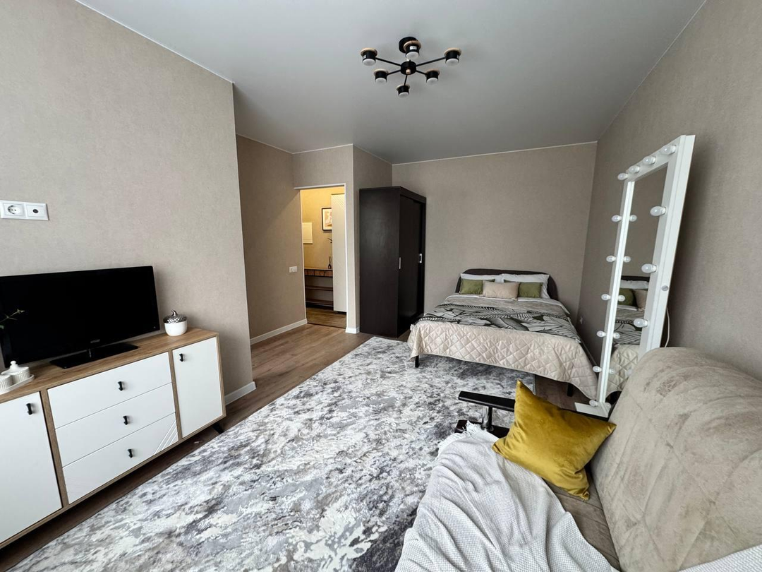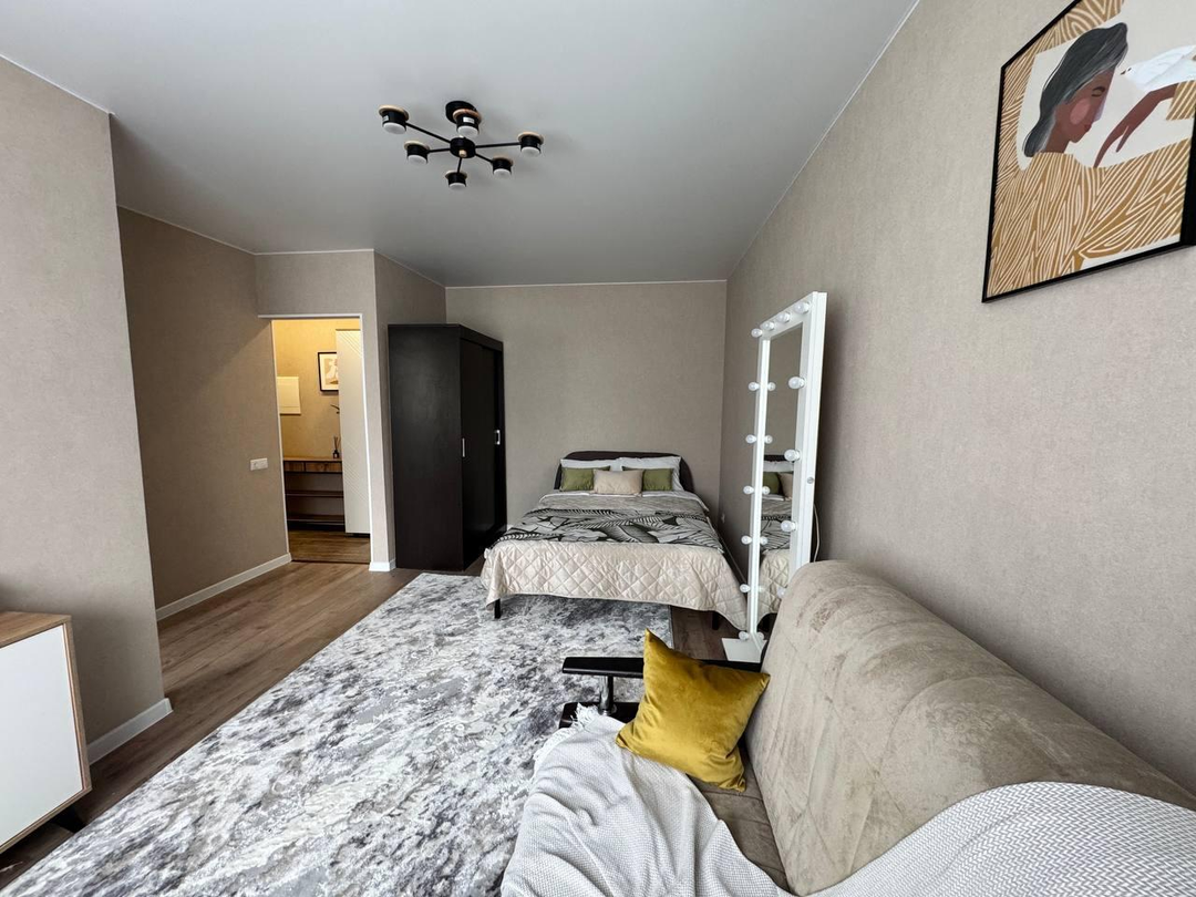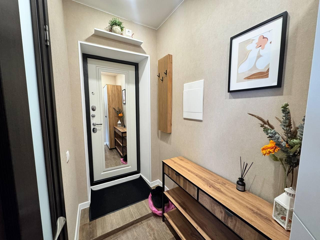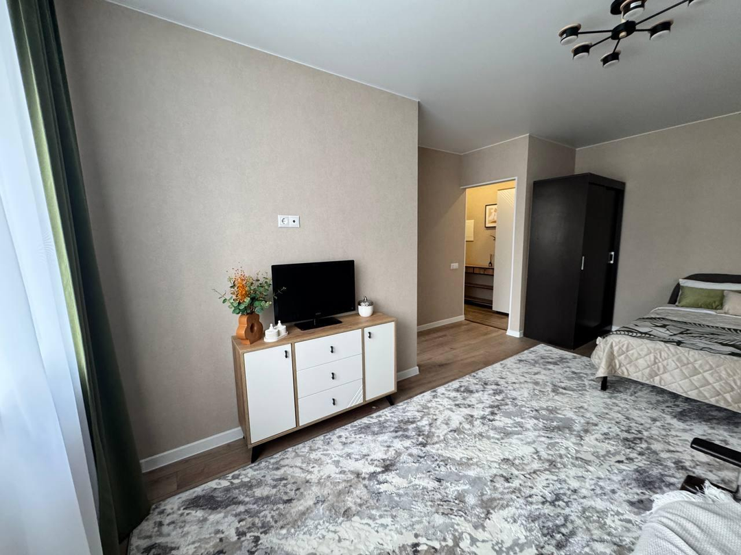 Общая площадь квартиры составляет 31 квадратный метр, включая просторную комнату площадью 17 квадратных метров и удобную кухню площадью 6 квадратных метров. В квартире выполнен идеальный ремонт с использованием качественных евроматериалов, что создает атмосферу уюта и комфорта.