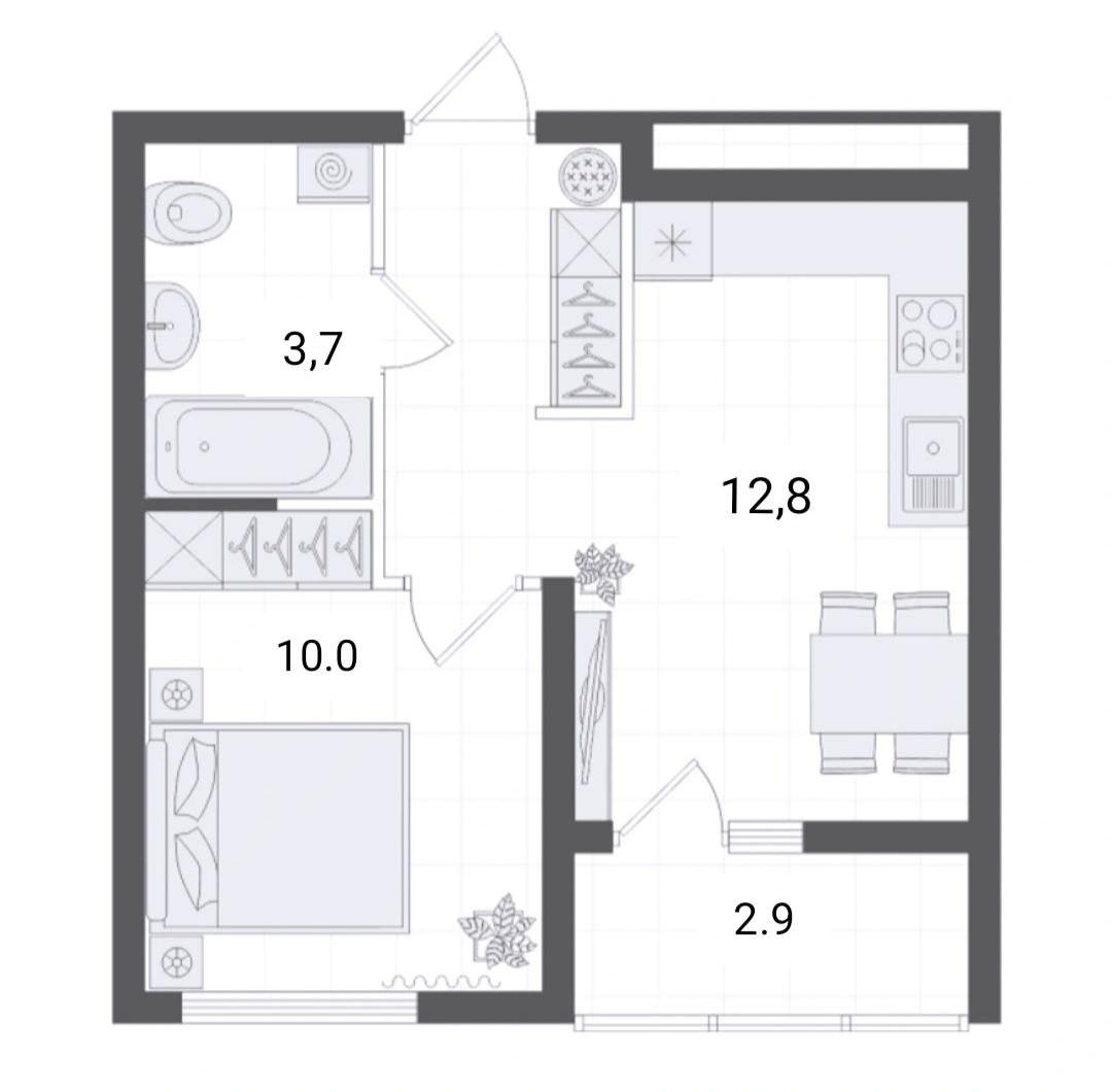 Отличная планировка: просторная комната с большим окном, отдельная кухня и компактный, но полноценный санузел. Всё продумано для комфорта.