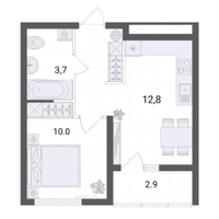 • Общая площадь: 30,3/10,0/12,8 кв. м