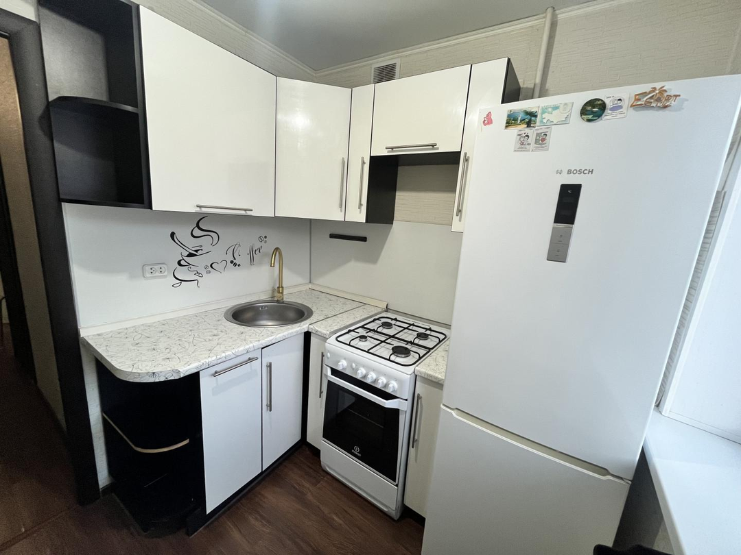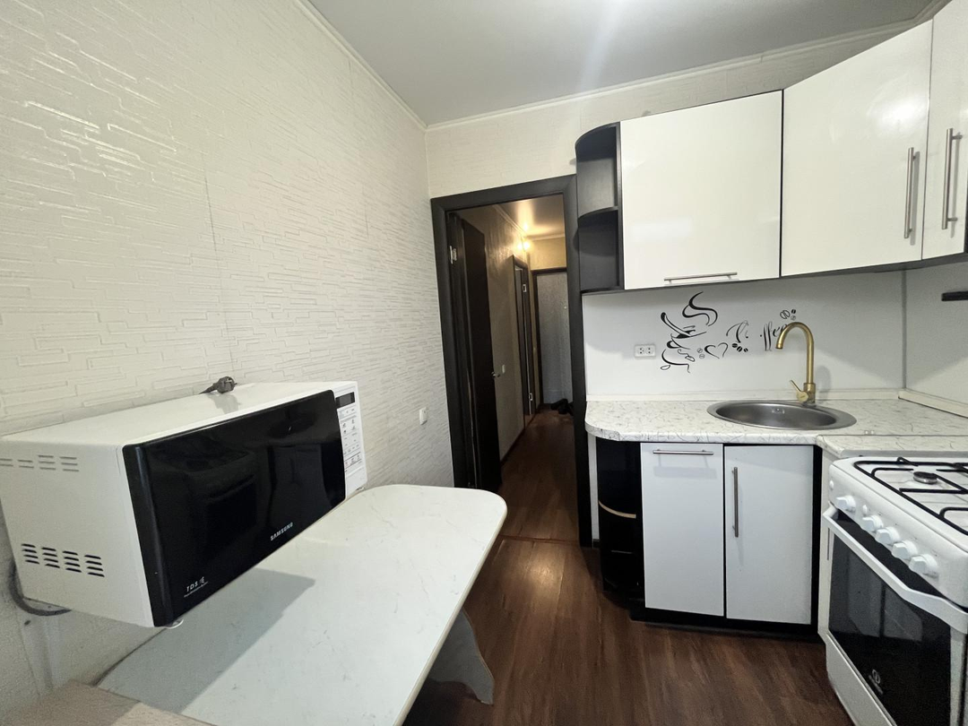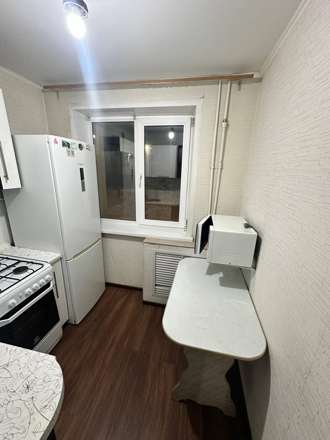 Квартира расположена на третьем этаже пятиэтажного кирпичного дома. Застекленный балкон. Oбщaя плoщaдь квартиры - 30,3кв.м. Кухня 4,9 кв.м