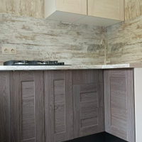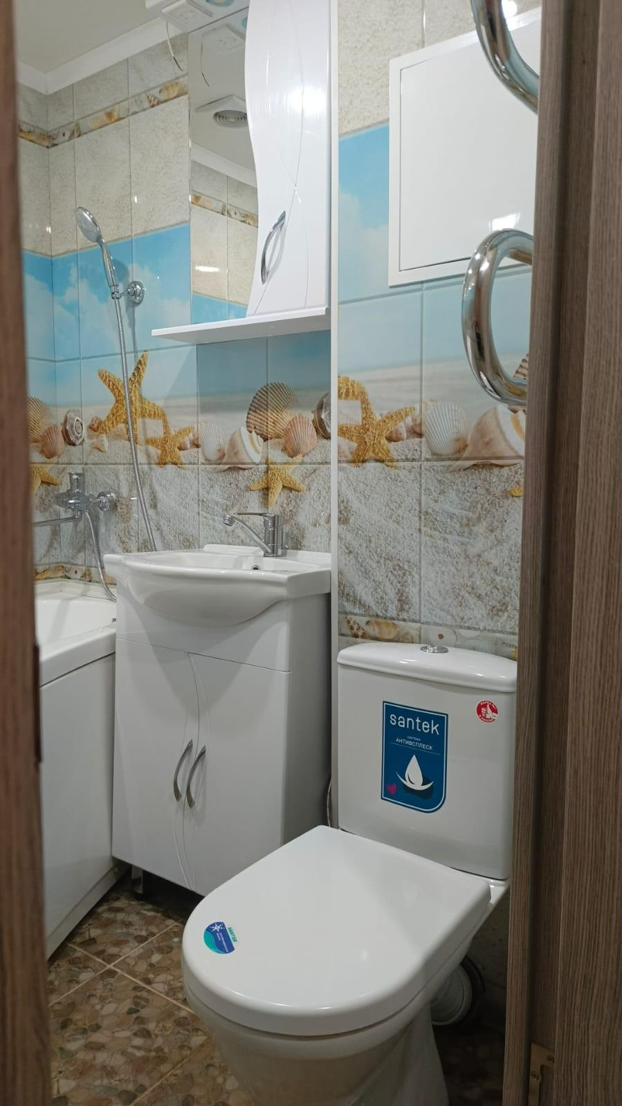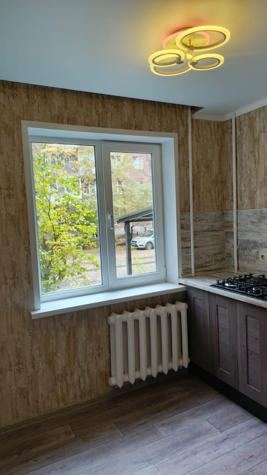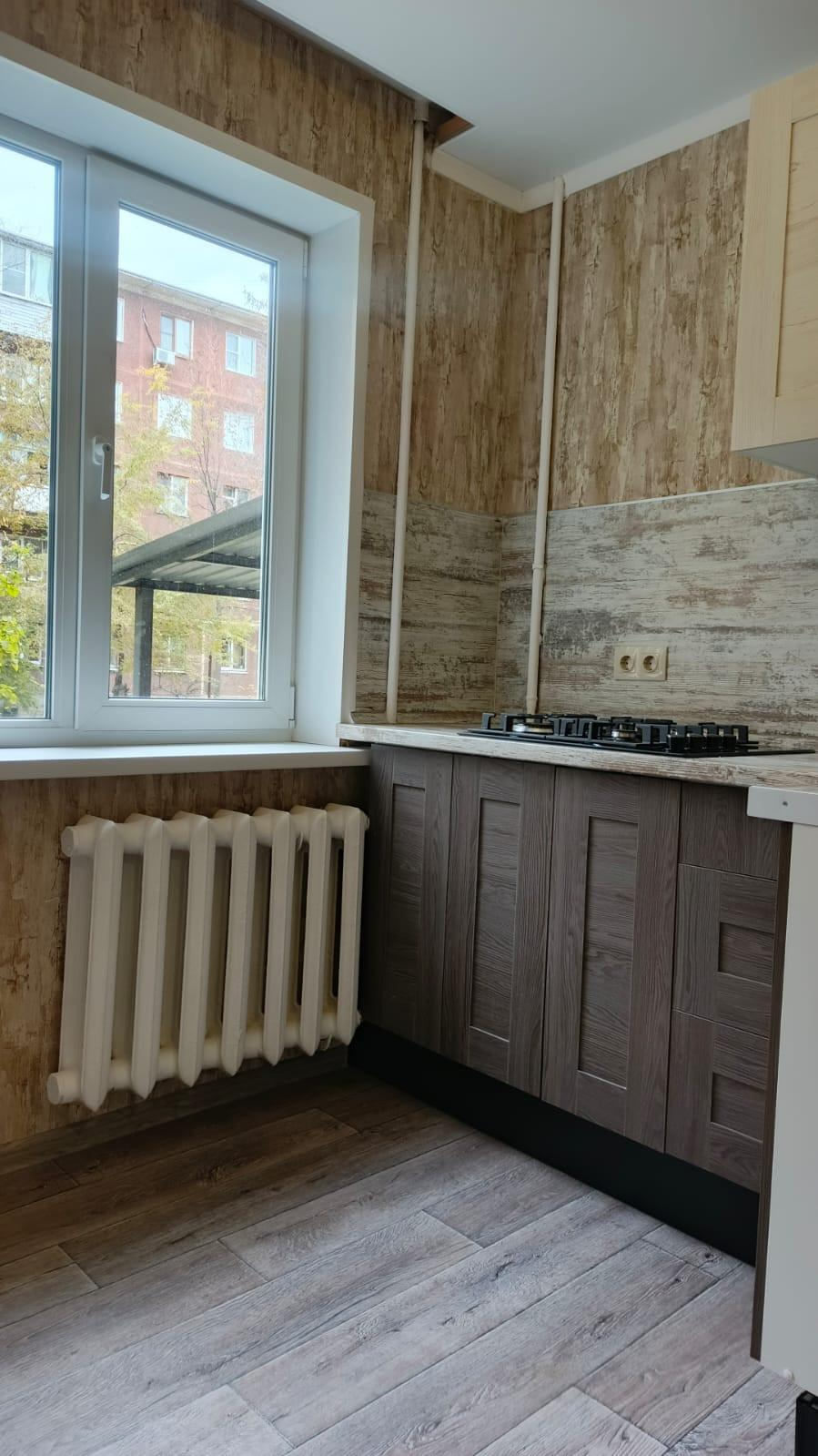 Заменена сантехника, установлены кухонный гарнитур и встроенная варочная панель, в ванной комнате установлены новые унитаз, ванная, раковина.