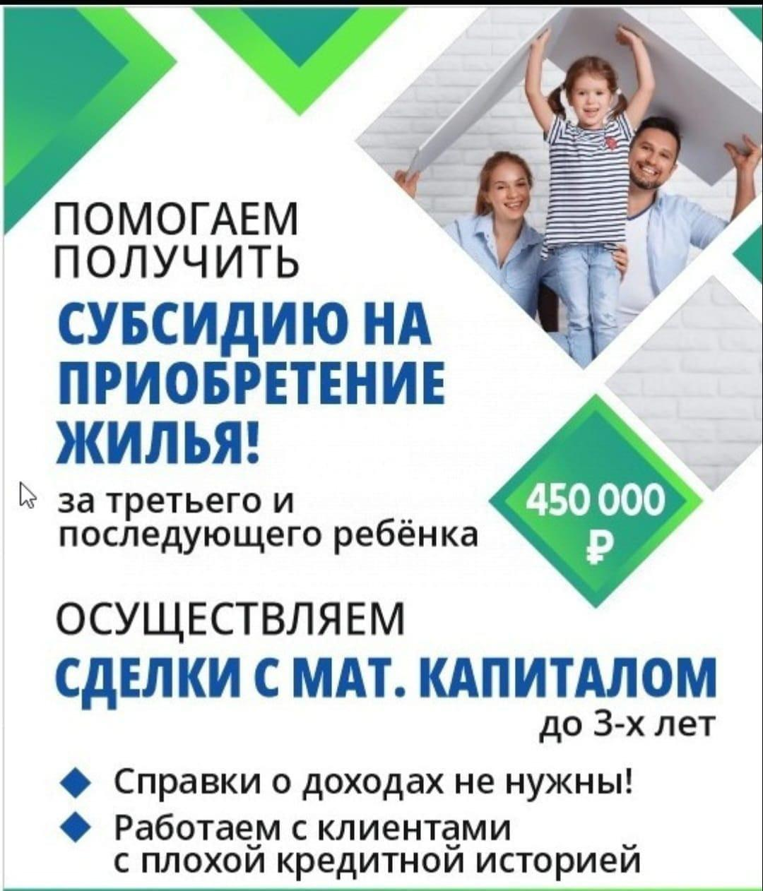 Помогу оформить субсидию в размере 450 000 за третьего ребенка.