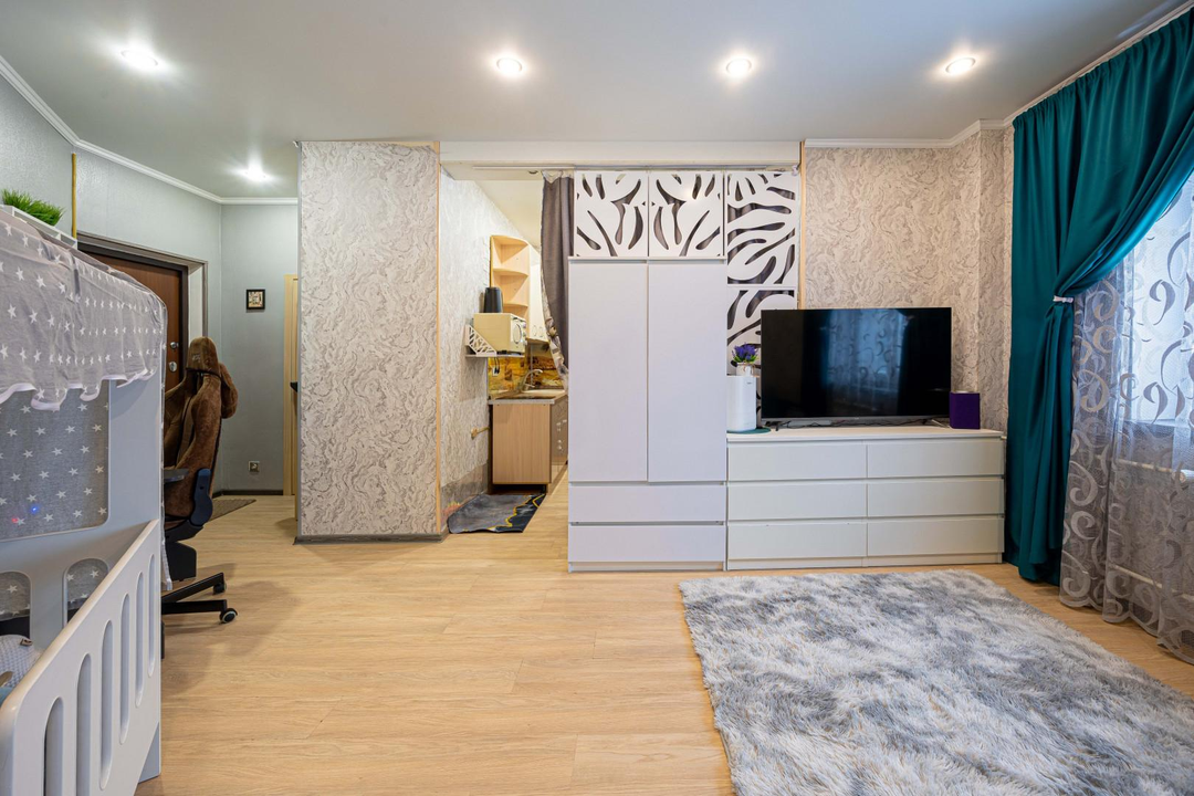 · Планировка: Изолированная комната (18.73 м²), отдельная кухня (9 м²), совмещенный санузел.