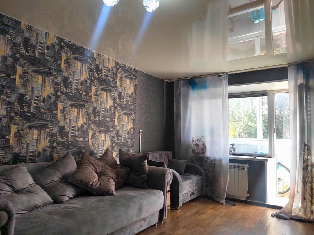 Продам 1-комнатную квартиру, брежн., пр-т Свердлова 24А, 2/5кирп., не угловая, окна во двор, балкон обшит и застеклен пластиком. Общая площадь квартиры - 30,6кв.м., комната - 17,1кв.м., кухня - 6кв.м., c/узел раздельный. Установлены пластиковые окна, поменяны межкомнатные двери, новые батареи, во всей квартире натяжной потолок, на полу качественный линолеум, современная входная дверь. Стены ванны и туалета обшиты панелями, новый полотенцесушитель, сантехника в хорошем состоянии. Установлены новые счетчики на воду. газ и электричество. Газовая колонка "Бош", плита "Дарина". Остается кухонный гарнитур.