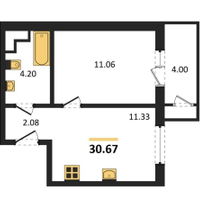 Удобная планировка: Расположена на 3 этаже 10-этажного дома. Общая площадь составляет 30.67 м².Просторная кухня: 11.33 м² — достаточно места для кухонного гарнитура и обеденной зоны.Уютная спальня: 11.06 м² с выходом на балкон 4 м², где можно обустроить зону для отдыха или хранения.