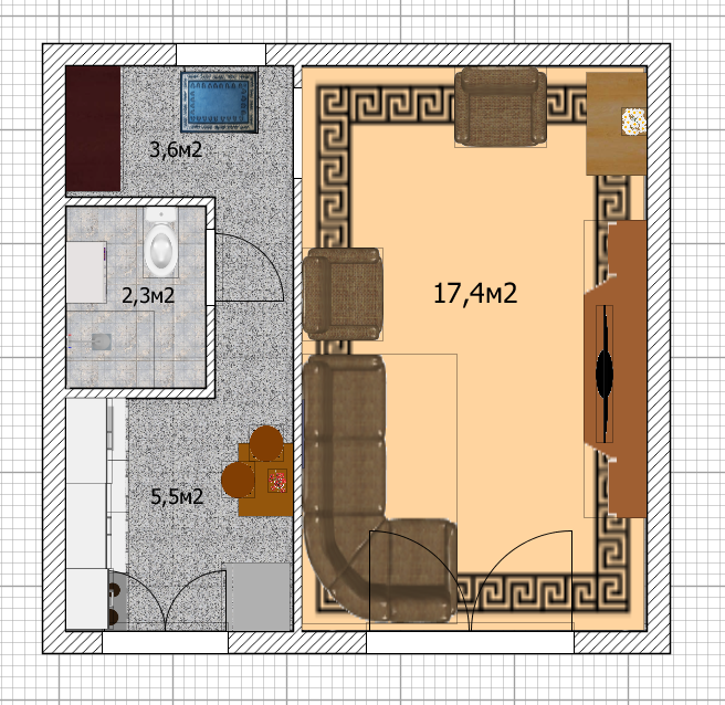 Общая площадь квартиры составляет 30 кв.м., из которых 5 кв.м. отведены под кухню. Это идеальный вариант для тех, кому важен комфорт и удобство.