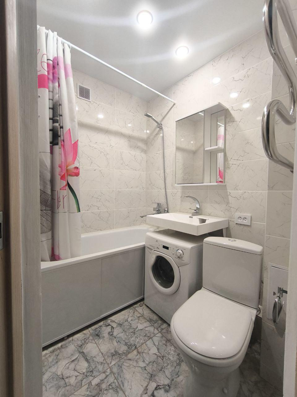 Ванная комната оформлена кафелем, установлена новая сантехника (ванна, унитаз)