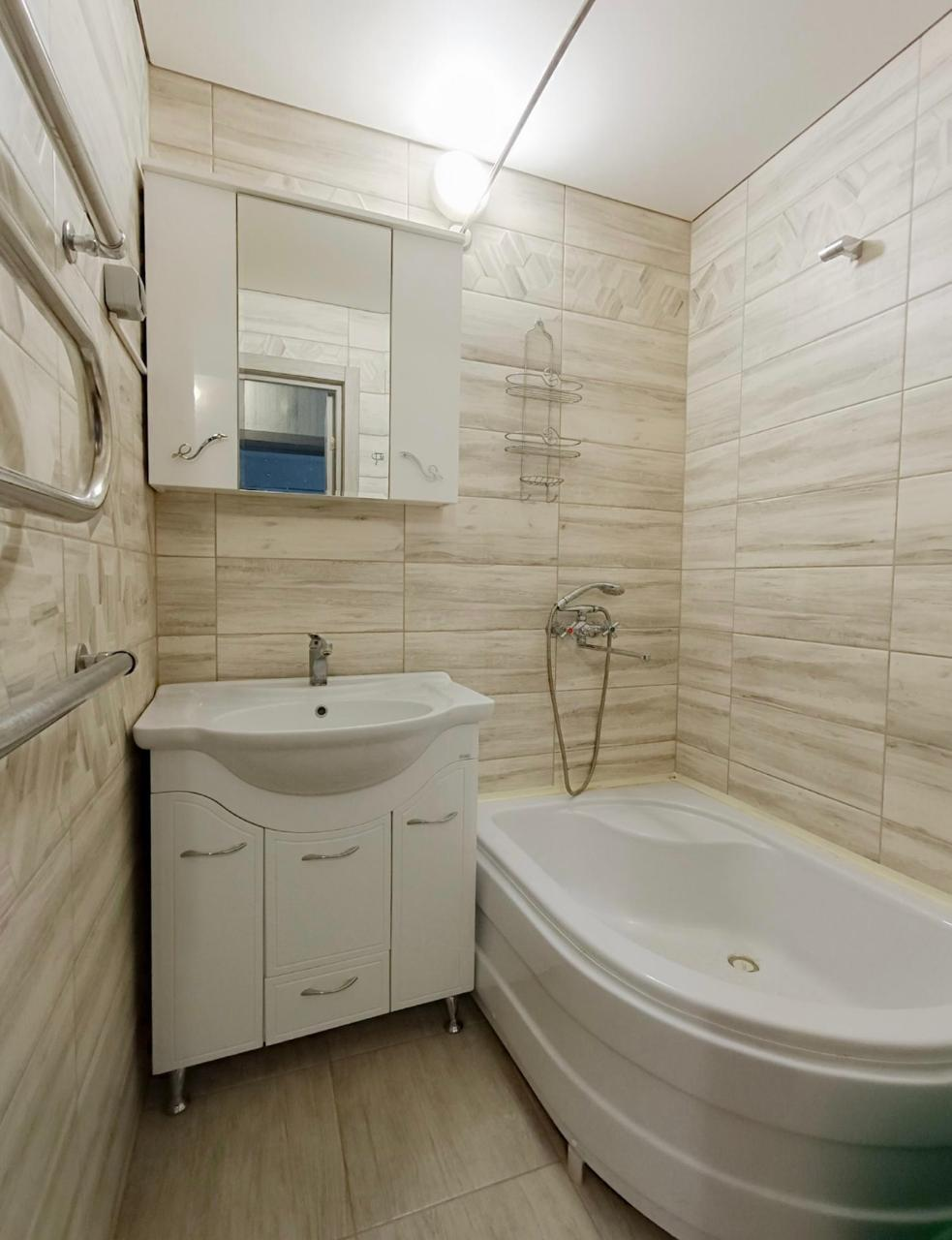 - санузел раздельный в плитке, новая ванная, раковина,