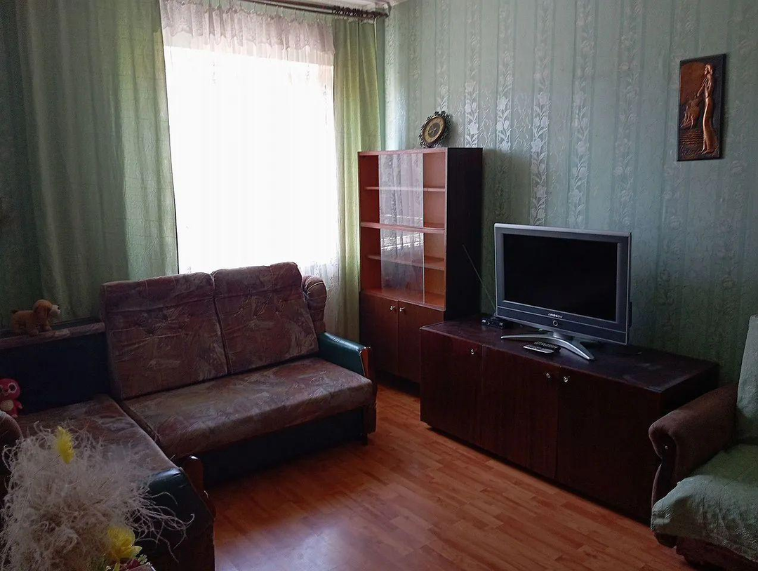 Квартира продается с мебелью и предметами интерьера (на фото)- т.е. в жилом состоянии, требуется косметический ремонт (переклейка обоев).
