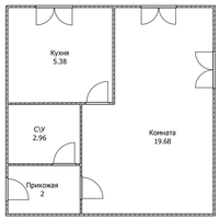 Функциональная однокомнатная планировка, которая легко поддается современному зонированию.