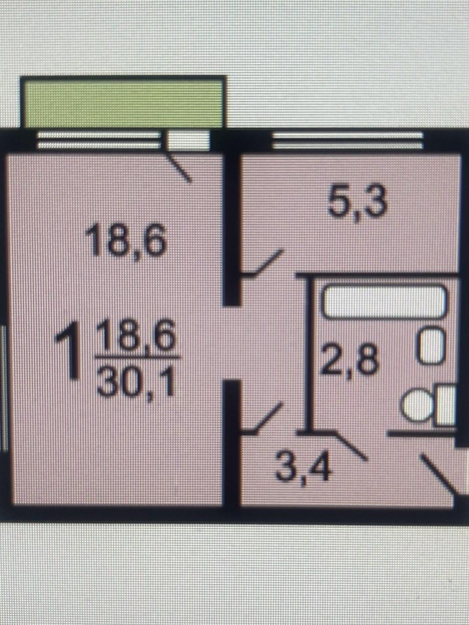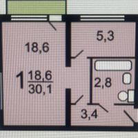 Характеристики квартиры:Жилая площадь – 18 м²Кухня – 6 м²Потолки – 2,5 метраПросторный балконСовмещенный санузел