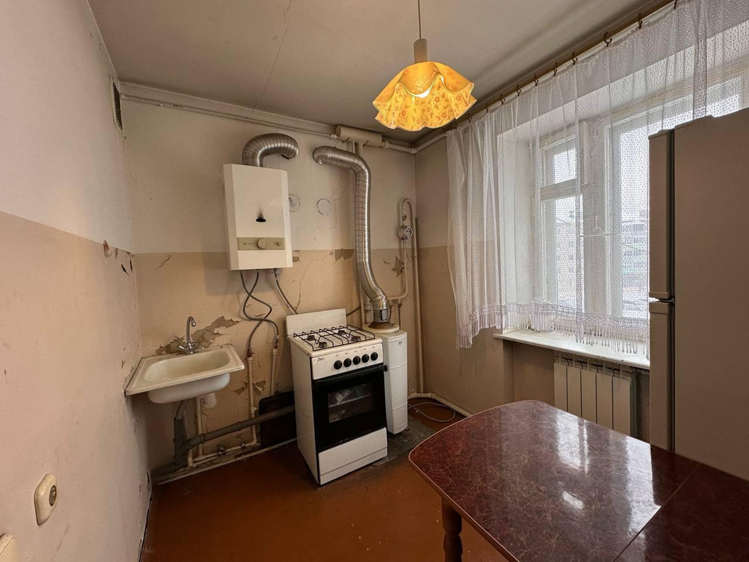 Общая площадь 31.7 м2., жилая 17.4 кв.м., кухня 5.7 кв.м. Низкие коммунальные платежи. Напольный газовый котел на отопление, газовая колонка ( всегда горячая вода).
