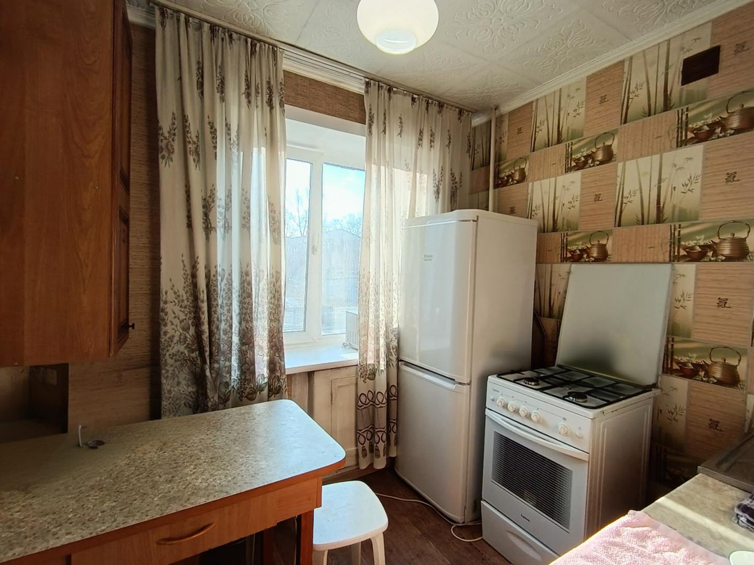 Пластиковое окно на кухне, ровные потолки, счетчики на холодную и горячую воду. В целом, хорошее техническое состояние.