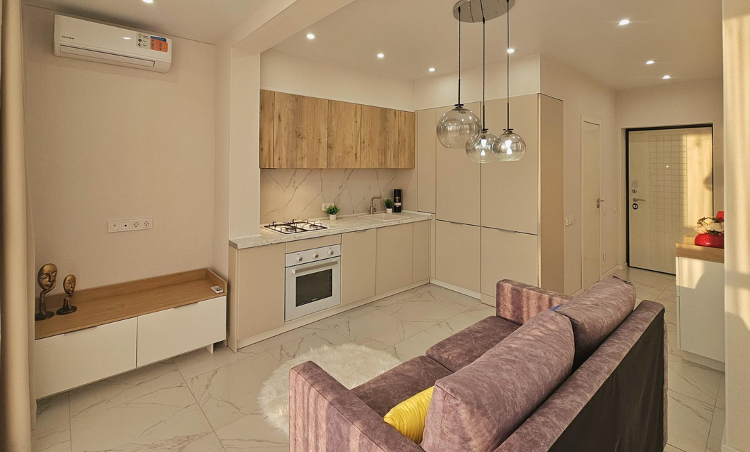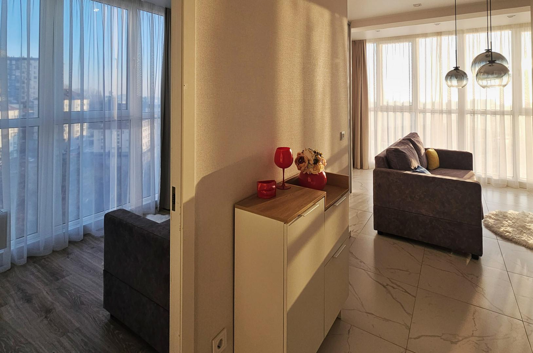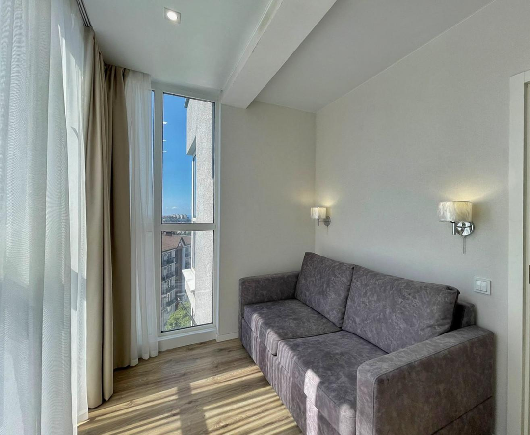 ---О KВAPТИPE: Новая квартира с дизайнерским ремонтом, в которой все продуманно до мелочей и ремонт сделан из качественных материалов. Удобная и функциональная планировка квартиры, просторный коридор. Прямой вид на море и на город, теплые полы, посудомоечная машина, зайти и жить. Отлично подойдет как и для жизни, так и для сдачи.
