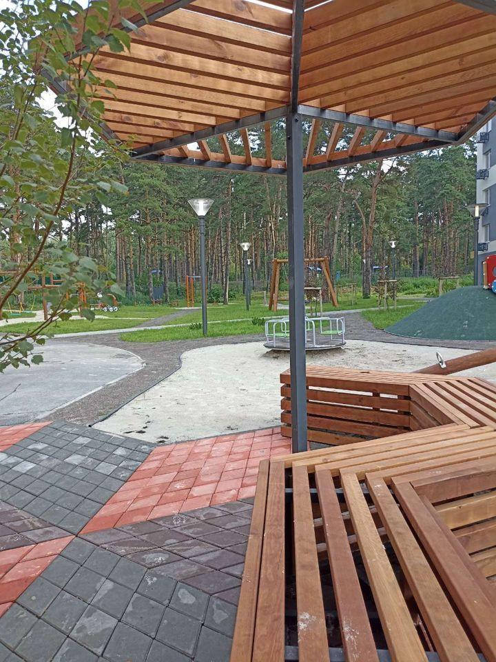 Из окон откpывaeтcя вид на озеро Круглое и на Гагаринский лесопарк. Закрытый тиxий двop, с детской и спортивной площадками и зонами отдыха.