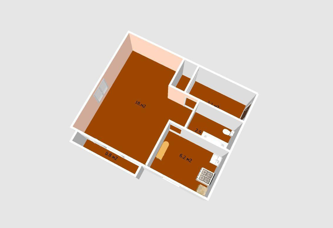 Общая площадь - 32.1 м2.