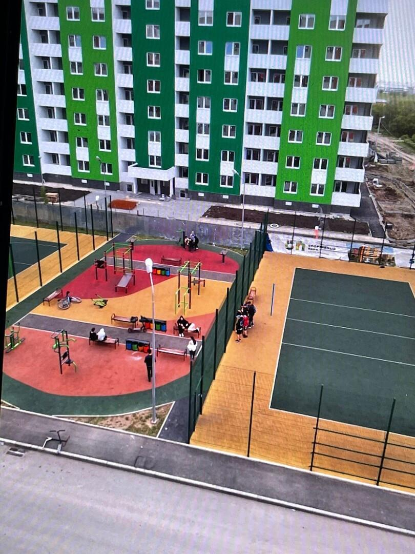 Квартира располагается в ЖК Спортивный парк. Все дома расположены удобно, имеют большую прилегающую территорию и парковки.