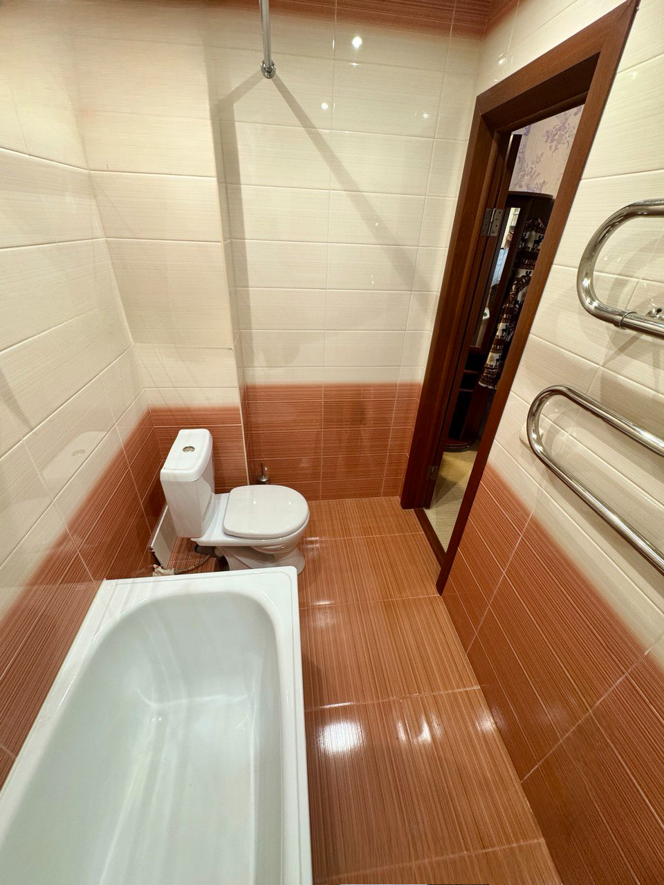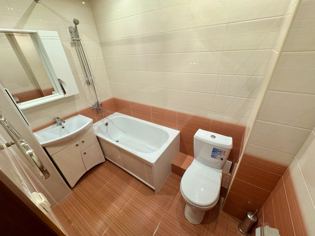 • Санузел: совмещенный, облицованный кафелем, что добавляет уюта и стиля.