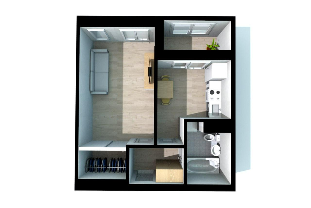 В квартире 3 окна, что обеспечивает максимальную освещенность и естественную инсоляцию.