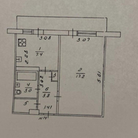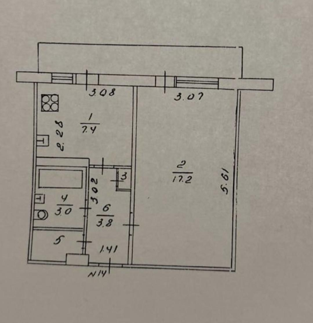 Планировка квартиры включает в себя просторную комнату 17.2 кв.м с выходом на балкон, вместительную кухню 7.2 кв.м , из кухни так же есть выход на балкон, совмещенный сан узел 3кв.м, прсторный коридор 3.8 кв.м, так же есть зона кладовки.