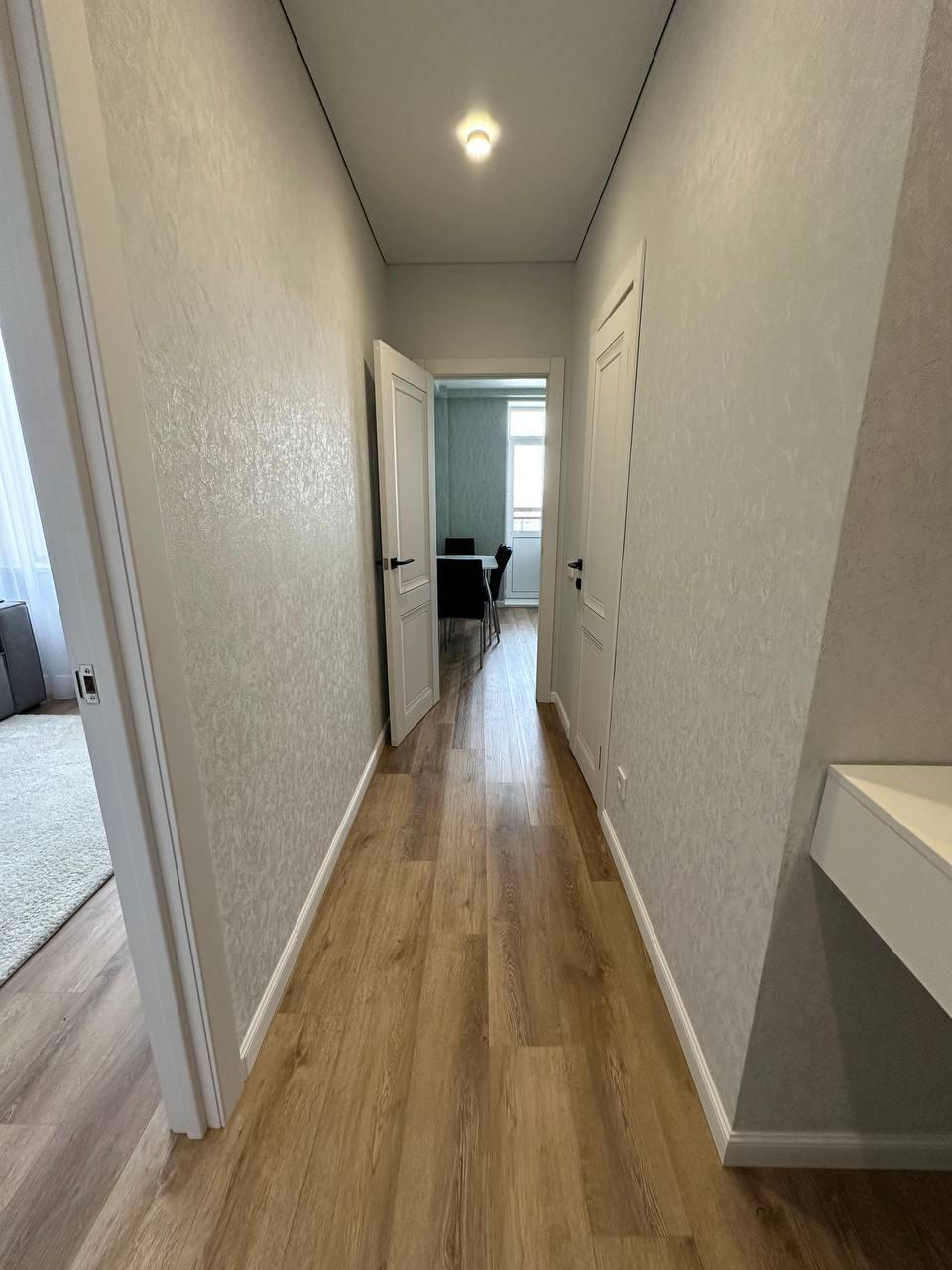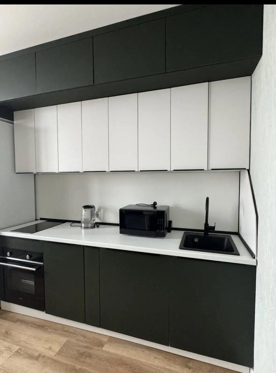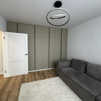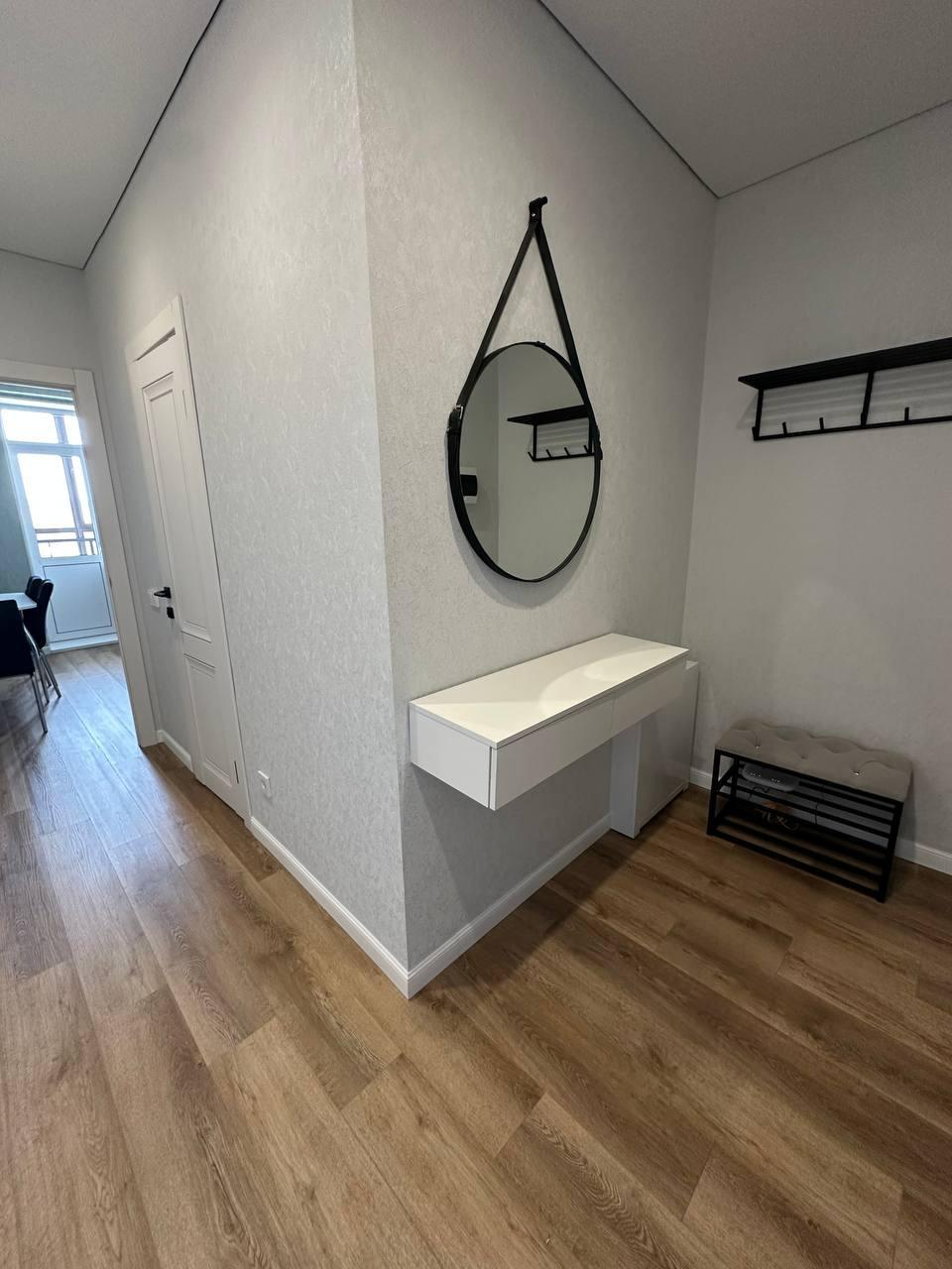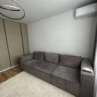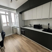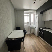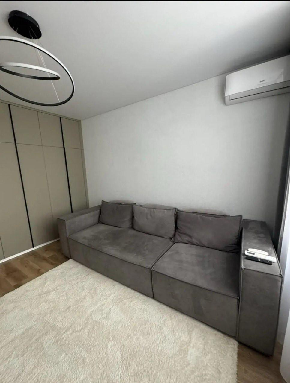 В квартире установлена качественная мебель: кухонный гарнитур, стол+стулья, встроенная посудомоечная и стиральная машинка, угловой серый диван, встроеный шкаф-купе, телевизор. Вся мебель и техника остается!