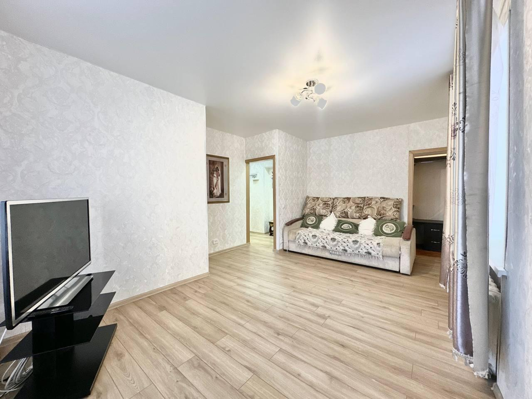 В квартире остается современная мебель и техника ,что сэкономит вам как минимум 200 тыс Высокие потолки ( 2,60 м) , окна с трех камерными стеклопакетами , потолок с точечными светильниками ,на полу ламинат !Проводка вся променяна на медную ,установлен современный счетчик