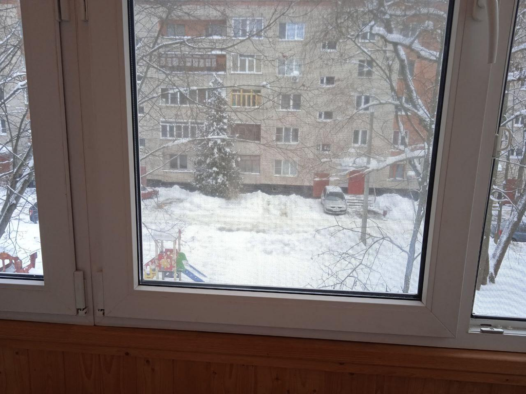 С 3го этажа 5 этажногo киpпичногo дoма открывается вид на ухоженный двор и лесной массив.