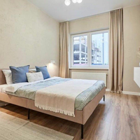 Общая площадь 35,9 кв.м, 33,2 жилая и 2,7 балкон. Высокие потолки 3,05 м. Грамотная планировка: просторная уединенная спальня с двуспальной кроватью и ТВ-зоной. Просторная, уютная кухня (укомплектована новой техникой: посудомойка, варочная панель, духовой шкаф, вытяжка, холодильник). Ванная комната с тропическим душем и стиральной машиной.
