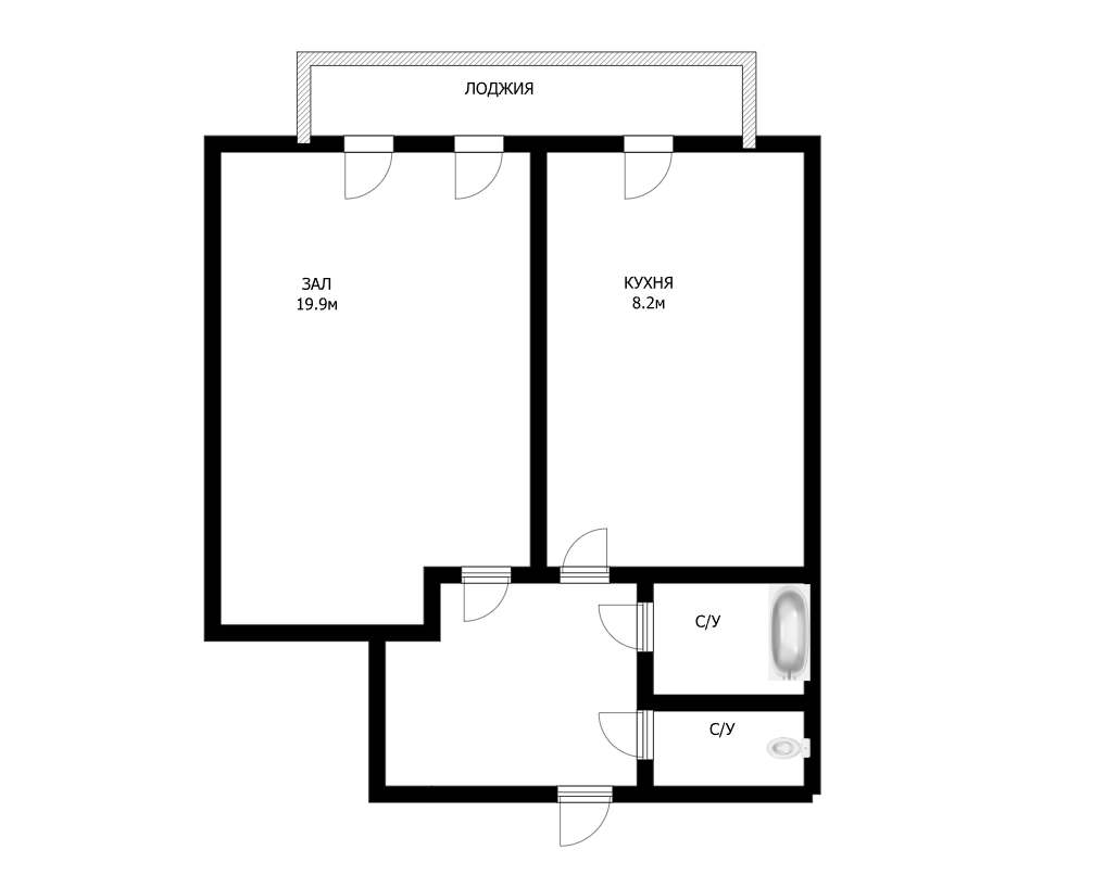 • Жилая площадь 19,9 м²