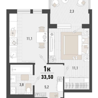 1-к. квартира, 33,5 м²
