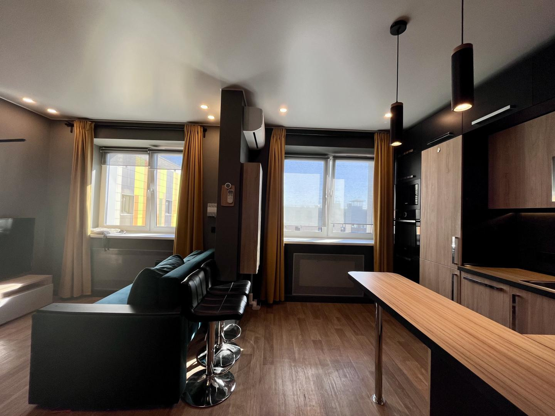 Что внутри: Европланировка: кухня-гостиная ( 18+ кв.м по ощущениям ) + отдельная спальня.Зонирование уже выполнено - установлено установлено пластиковое остекление с дверьми. Вы получаете полноценную комнату для сна и просторную общую зону.