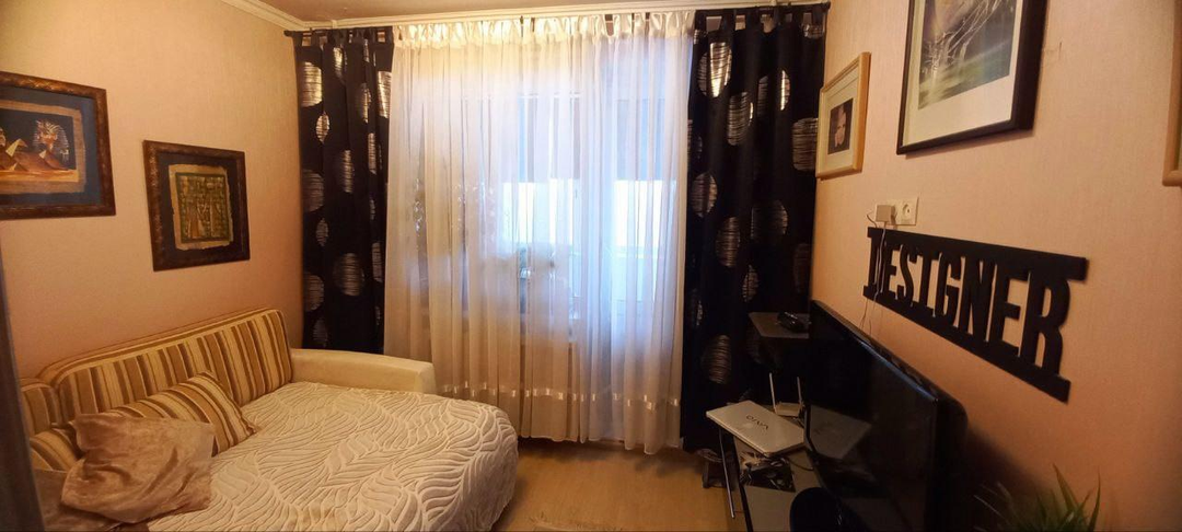 Уютная комната площадью 19 кв.м. разделена на две зоны: Вы удобно разместитесь с детьми. В кухне площадью 6,5 кв.м. размещается всё необходимое: кухонный и обеденный гарнитуры, Санузел раздельный. Балкон с выходом из комнаты, оборудован как летняя веранда, застеклен. Высота потолков 2,6 м. Окна квартиры выходят во двор. Квартира с ремонтом и мебелью: Вы можете сразу заехать и жить без дополнительных вложений.