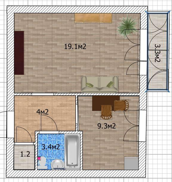 Общая площадь - 33 м2.