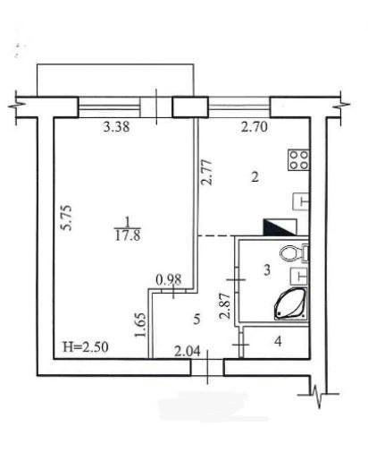 Общая площадь 34.3 кв. м.,
