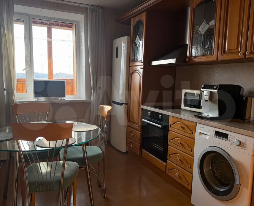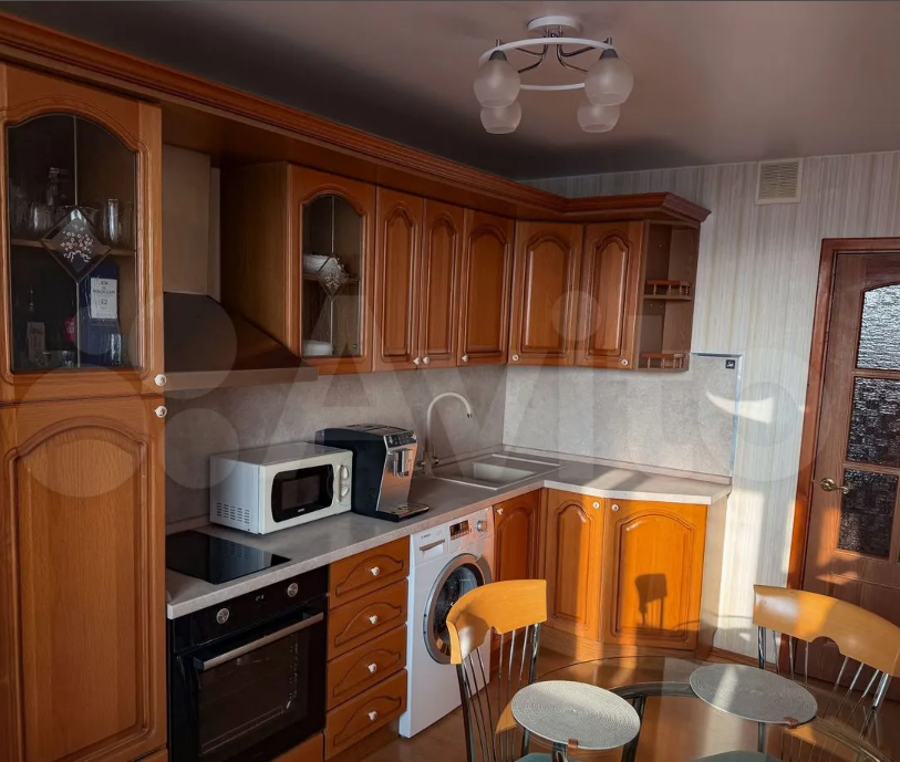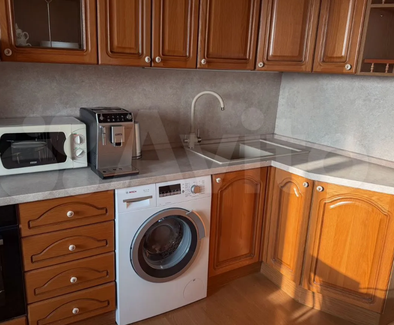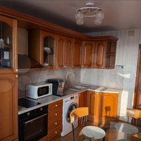 Кухонный гарнитур из массива дерева в отличном состоянии. Оснащена варочной панелью, духовкой, микроволновой, стиральной машиной Воsсh 7 кг, вместительной раковиной с сушкой, установлены фильтры для питьевой воды Гейзер Аллегро, холодильник LG.