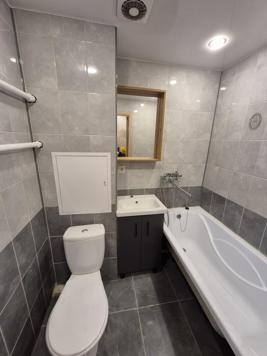 Кухня оборудована необходимым для комфортного приготовления пищи. Санузел совмещённый, в плитке, чистый и аккуратный.