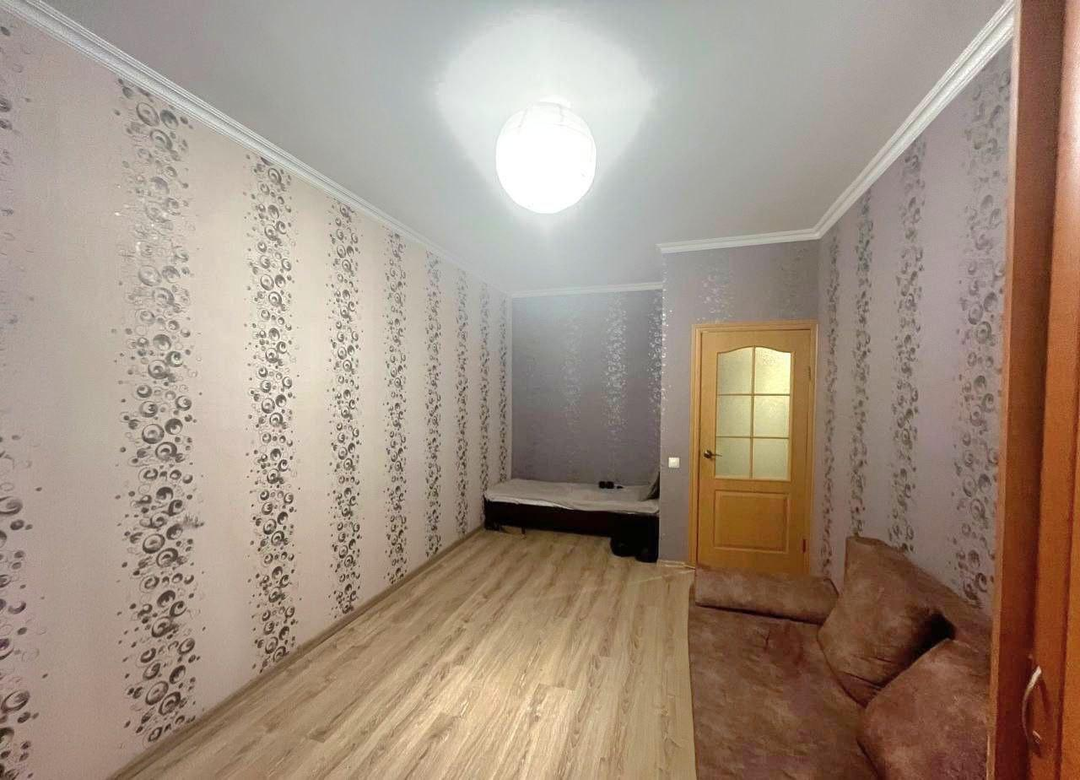 Выполнен качественный ремонт: стены оклеены обоями светлых тонов, натяжные потолки, на полу ламинат. Санузел отделан современной плиткой, все коммуникации полипропиленовые.
