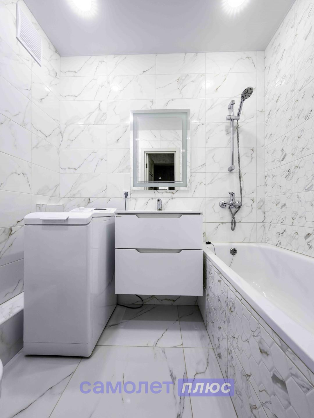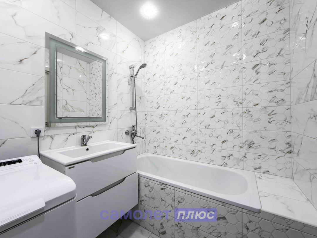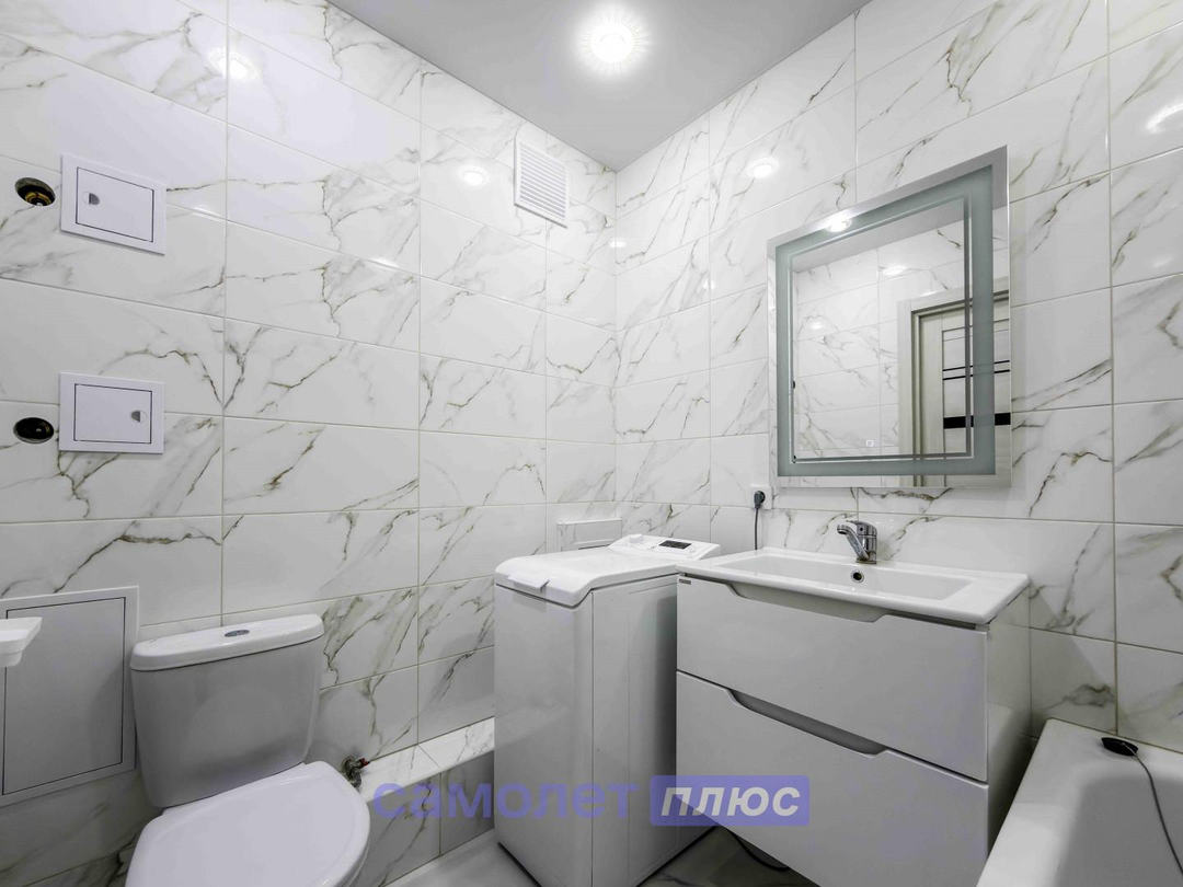 - Современная ванная комната площадью 3.90 м² оборудована всем необходимым для комфортного приема водных процедур.