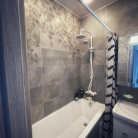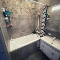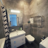 - санузел совмещен в кафеле, новая ванная, раковина, душевая, стиральная машина,