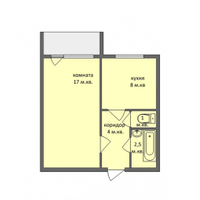 Площадь квартиры — 34 м²: жилая комната 18 м² , кухня 9 м² сан узел и ванная раздельные.