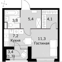 Квартира без отделки. Прекрасная планировка с гардеробной , есть возможность организовать отдельное спальное место.