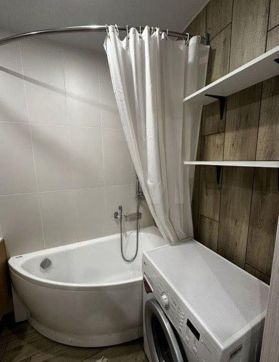 — В ванной стиральная машина, шкаф, водонагреватель