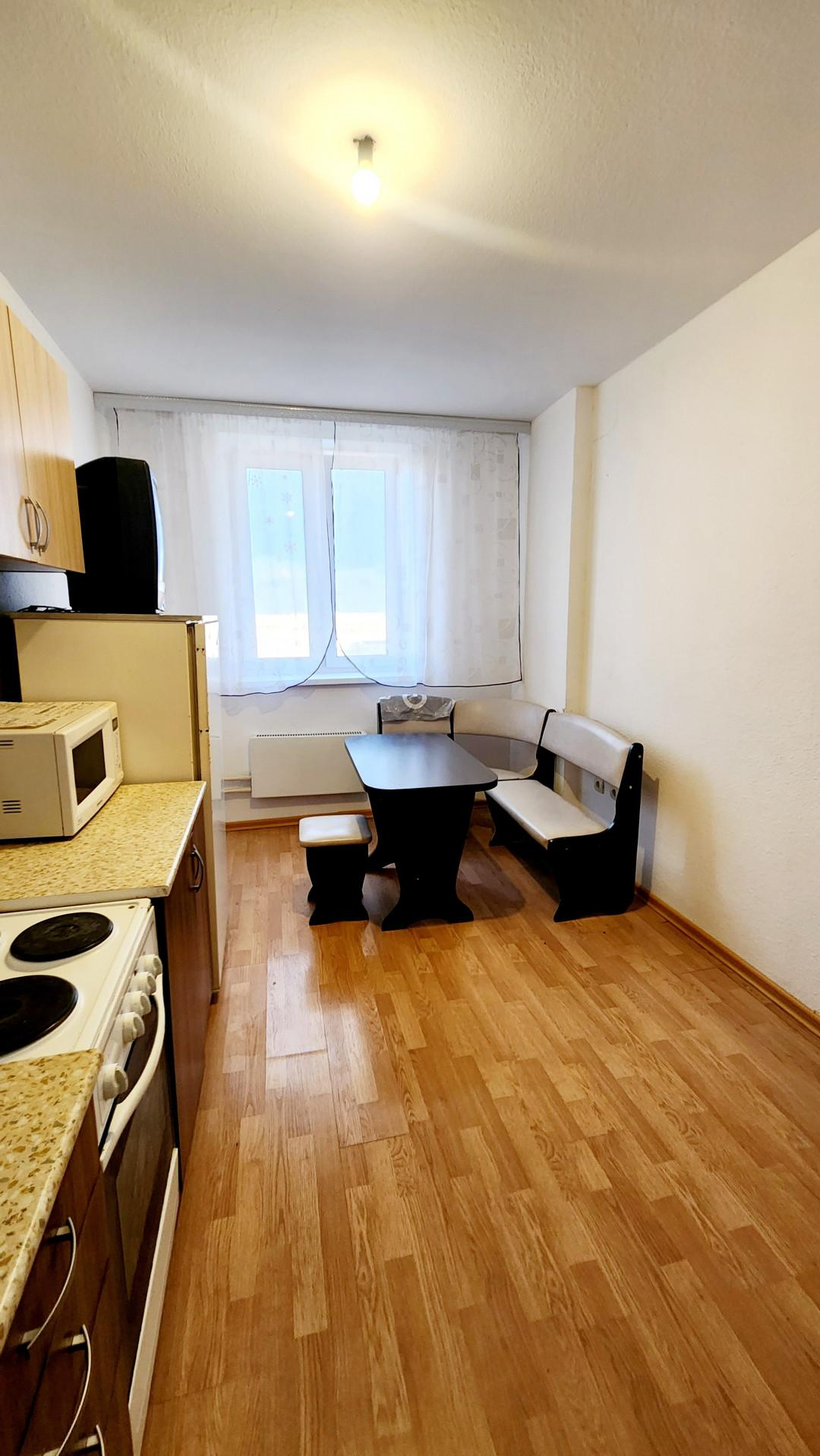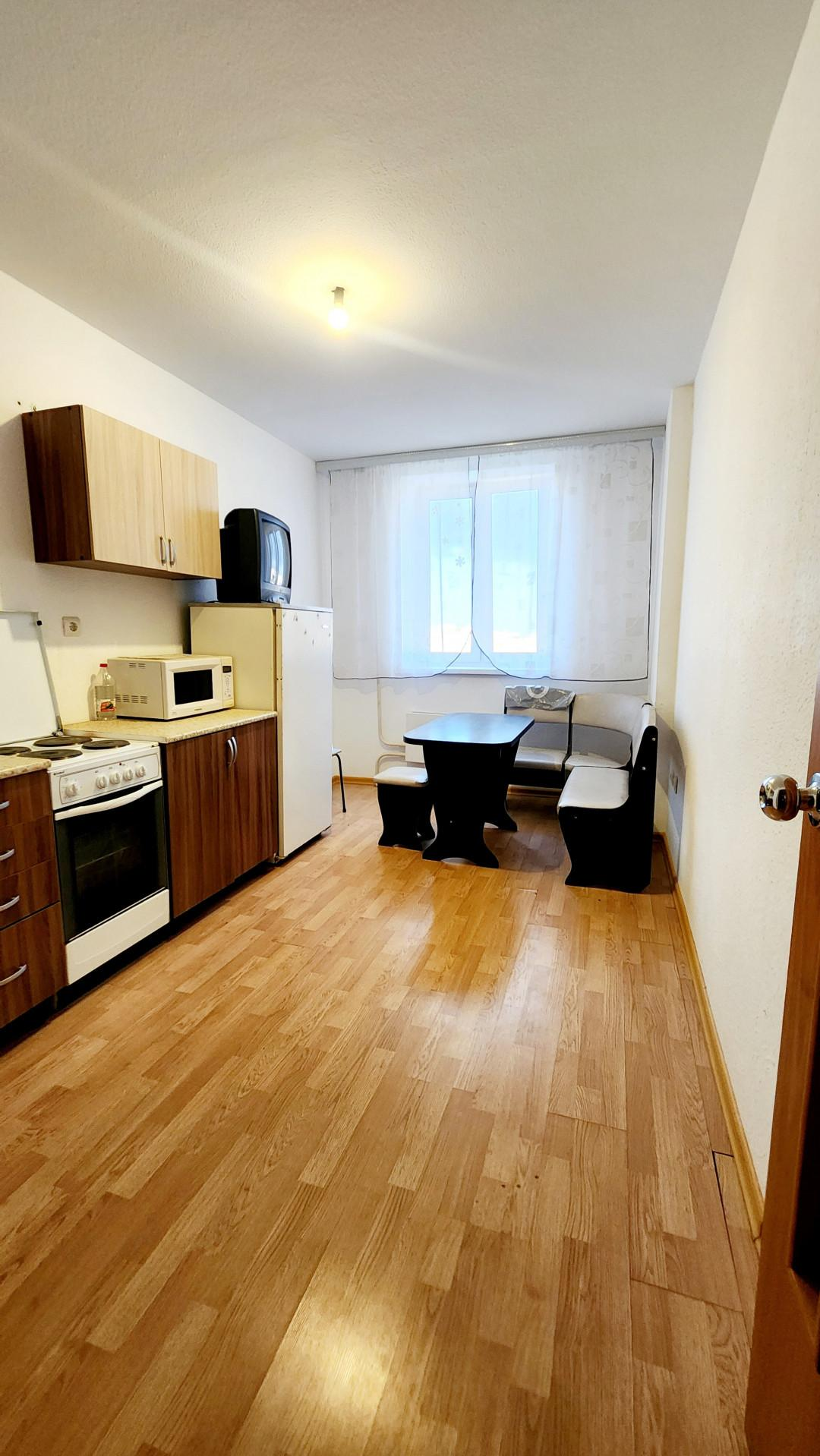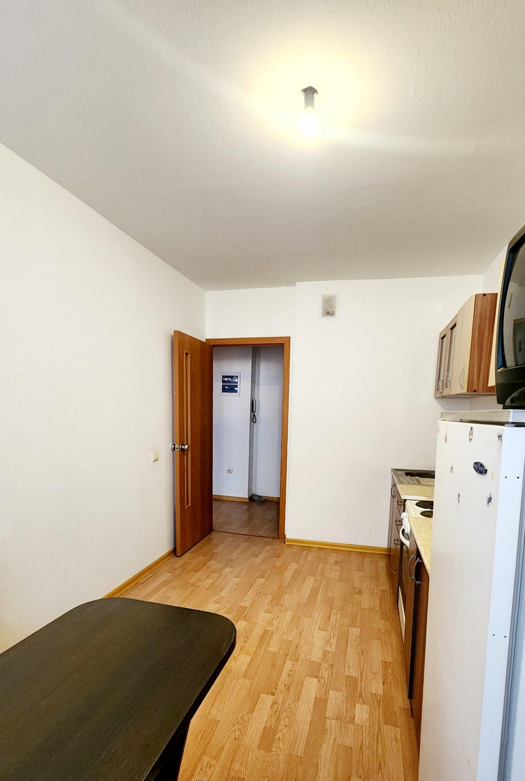 Не угловая, общей площадью 35,4 кв.м, комната 15,5 кв.м, кухня 11.3 кв.м., просторный коридор. Ремонт от застройщика, стены и потолок под покраску, ламинат. Сан. узел совмещен, на полу кафель. Квартира ОЧЕНЬ светлая, открывается прекрасный вид на город. Лоджия 5 кв.м.
