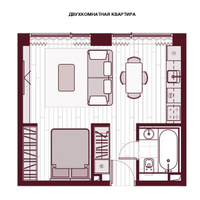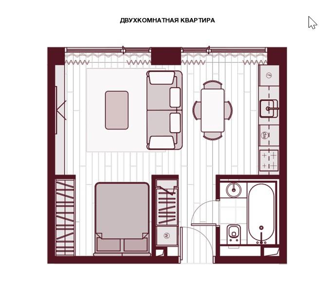 Компактная площадь грамотно организована: пространство легко зонируется под спальню и гостиную, при этом сохраняется ощущение свободы и уюта.