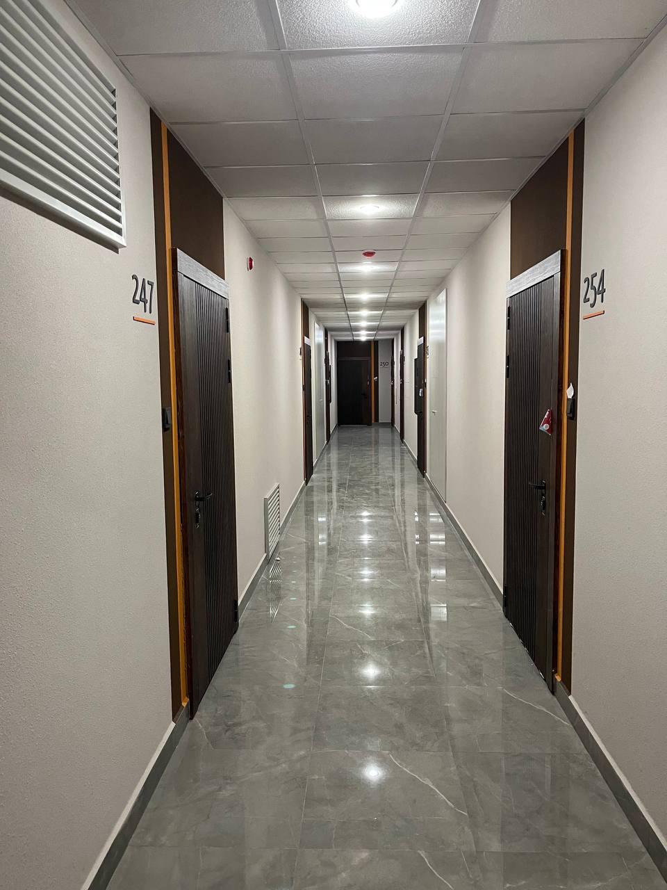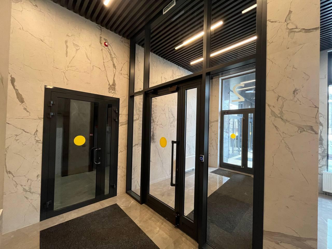 Холлы выполнены по авторскому дизайн-проекту: высокие потолки, большие остекленные входные группы, спокойные цветовые решения.