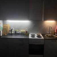 · Просторная кухня: Удобное планировочное решение для комфортного отдыха и приёма гостей. Что остаётся в квартире: Вся мебель, за исключением телевизора, микроволновой печи и гримерного стола.