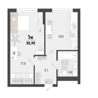1-к. квартира, 35,9 м²